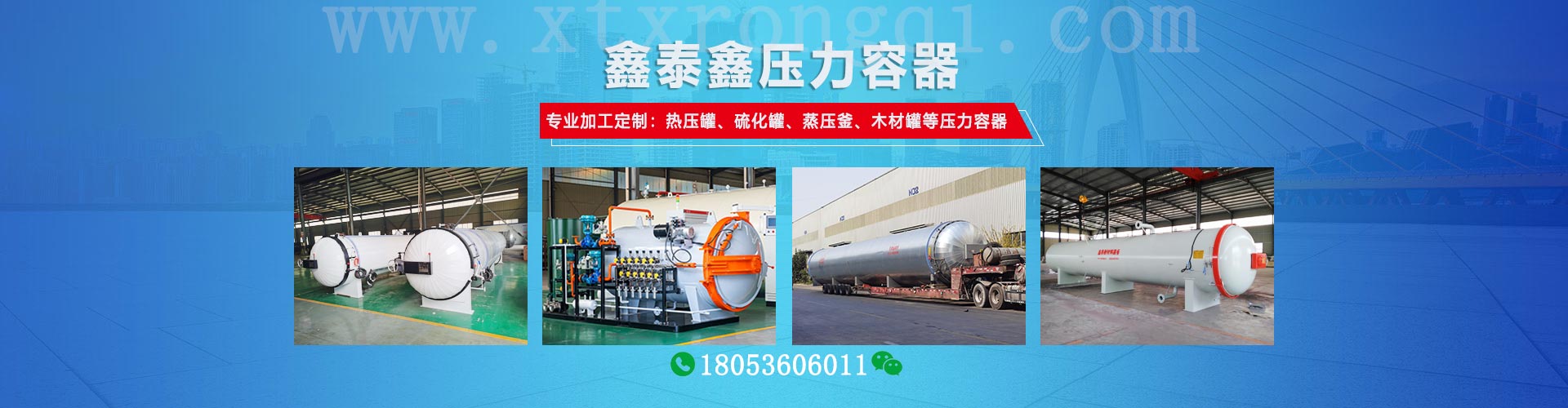 您好,歡迎來到山東鑫泰鑫智能裝備有限公司網站!我們為您提供各種規格的硫化罐、熱壓罐、蒸壓釜、木材罐等壓力容器設備及服務。